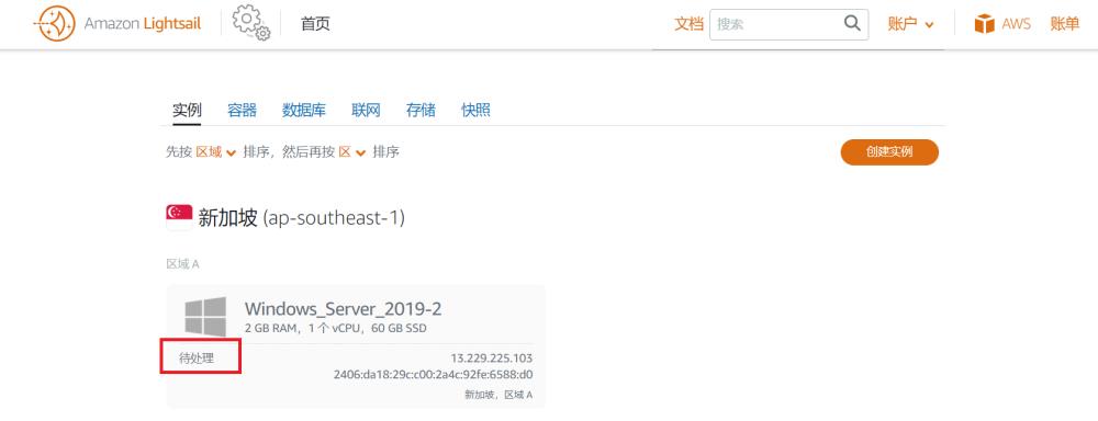 实例状态为“待处理”表示正在为您创建Lightsail实例。